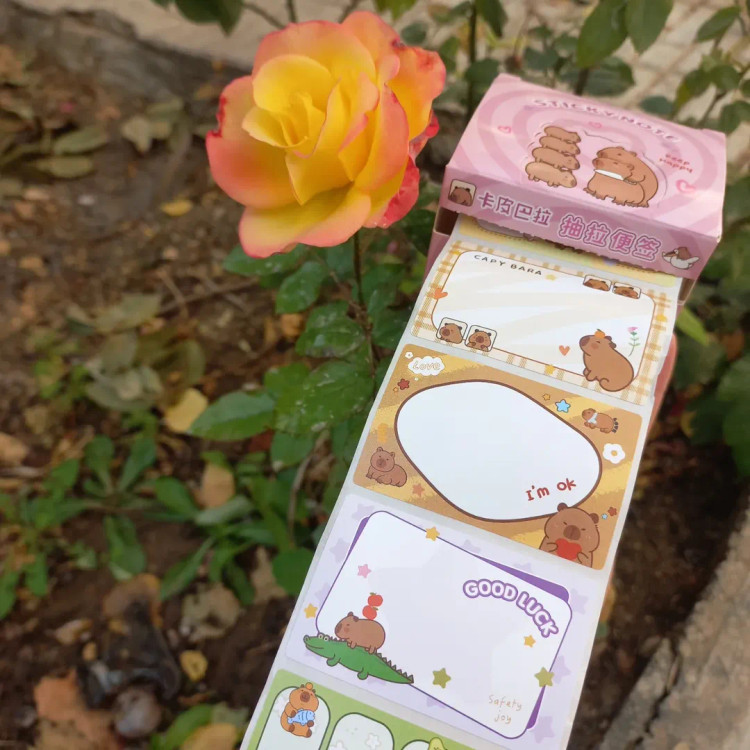 استیک نوت رولی در گ با طرح کاپی بارا هم میتونی بعنوان استیک نوت استفاده کنی هم برچسب اسم روی کتاب و دفترهای دانش آموزا اقتصادی و به صرفست.